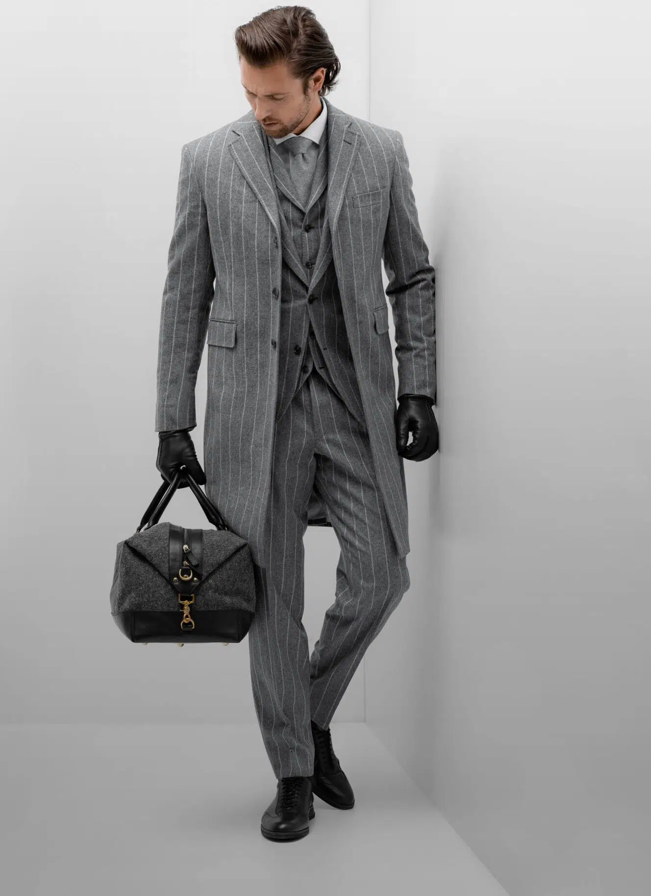 The overcoat is an essential piece in a man’s wardrobe, especially in cold climates. Traditionally made from wool, ranging from merino to camel, cashmere and vicuña, this great coat is designed to be worn over normal clothes, offering warmth and style. The design of the overcoat, which can be an Ulster, Chester or Raglan usually features elegant lines and structured shapes, making it a sophisticated and versatile item.